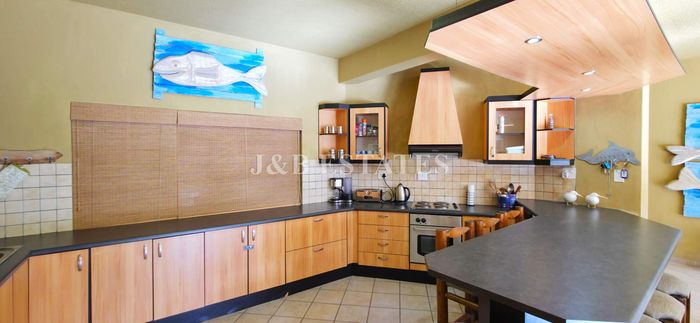 The house itself offers a comfortable living space with 2 living rooms, 3 bedrooms, 1 bathroom, a guest toilet, a kitchen equipped with built-in cupboards, a wooden bar, dining area, and an indoor BBQ. Additionally, there is a convenient tandem garage for parking your vehicles.